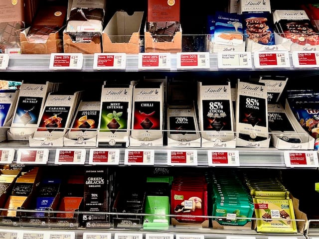 Aujourd’hui, à Londres, le chocolat n’est plus seulement une gourmandise. Il est devenu un petit luxe du quotidien et la cible de receleurs. Avec l’augmentation des prix du cacao sur les marchés internationaux, les tablettes et confiseries sont devenues des produits à forte valeur ajoutée. Certaines marques premium (comme Lindt & Sprüngli ou Ferrero), peuvent atteindre des prix élevés, surtout en période festive ou pour des occasions particulières comme la St Valentin, la fête des mères, Pâques …